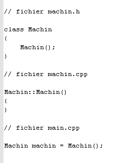 Code C++ décrivant la classe « Machin ».