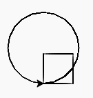On continue avec un truc simple. En plus du carré, tu vas me dessiner un cercle de rayon 60 pixels. Lorsque ton programme s’exécute, on doit voir ça :