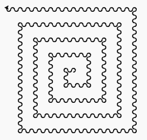 Soyons over-fun. Tu vas me dessiner une spirale de plus en plus épaisse. Le trait pourrait varier de 0 à 14 pixels, par exemple. Ça tombe bien, ta boucle s’exécute déjà avec un compteur qui va de 0 à 14.