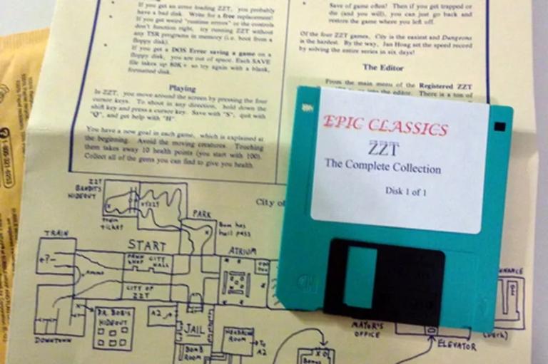 Je joue à Jill of the Jungle. Un petit readme publicitaire y est inclus, mentionnant le jeu ZZT et son éditeur de niveaux. C’est du mode texte, ce qui est techniquement cheap, même pour l’époque. Je remise ce souvenir au fond de mon cerveau pour un éventuel rappel ultérieur. Je passe à d’autres choses, principalement : mater les seins de mes camarades de classe.