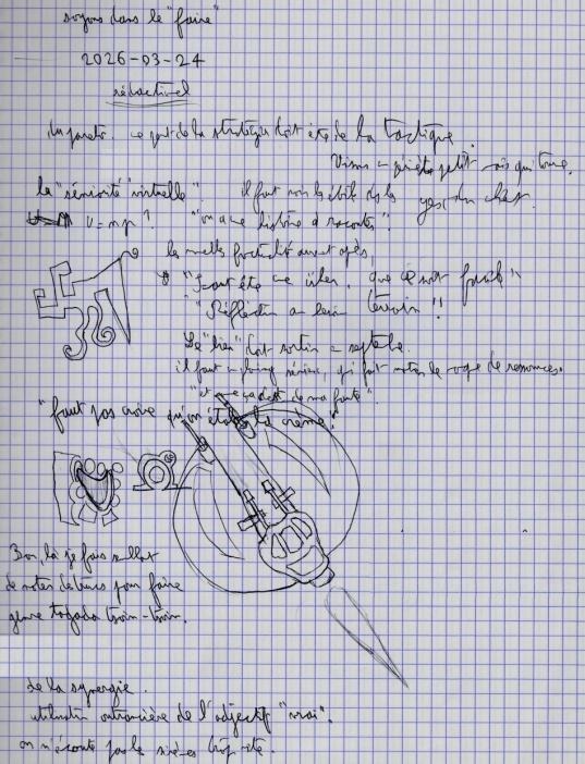 J’ai laissé le texte, ce sont les notes rigolotes que je prenais lors des réunions. En voici une transcription, au cas où vous auriez du mal à me lire. Par contre, cherchez pas à comprendre (pas même la date). La plupart des phrases proviennent de Semi-Chef Lucène-Lapin, brillant orateur de réunions devant l’Éternel·le.